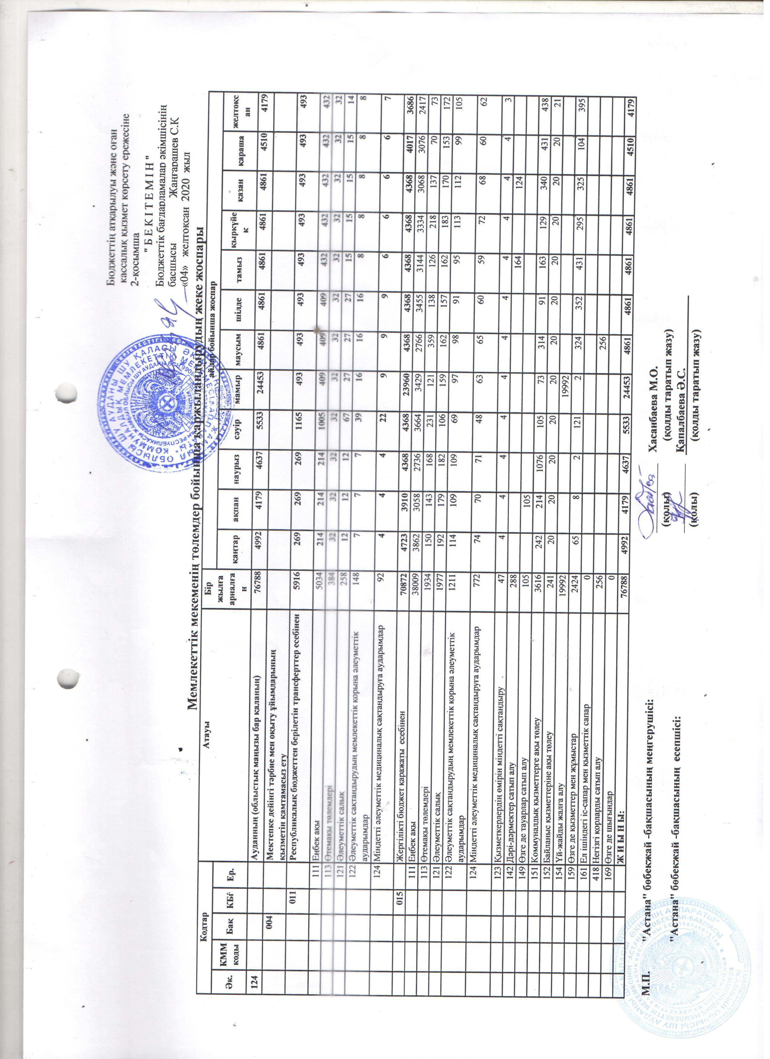 Мемлекеттік мекеменің төлемдер бойынша қаржыландырудың жеке жоспары » "Жамбыл облысы Шу ауданы Шу каласы "акимынын аппараты КММ “Астана” бобекжай- бақшасы” коммуналдық мемлекеттік қазыналық кәсіпорны
