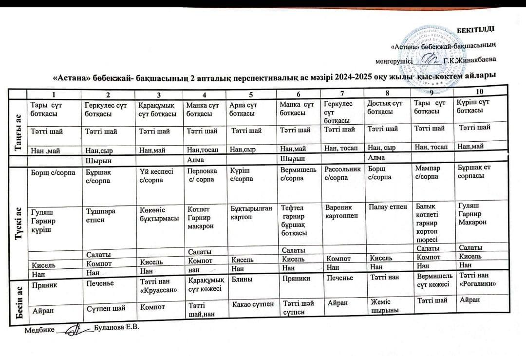" 10 күндік Ас мәзірі" » "Жамбыл облысы Шу ауданы Шу каласы "акимынын аппараты КММ “Астана” бобекжай- бақшасы” коммуналдық мемлекеттік қазыналық кәсіпорны
